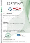 W celu utrzymania wysokiej jakości produkowanych wyrobów w marcu 2006 roku Zakład "Aga" Spółka Jawna wdrożył system zarządzania jakością zgodny z normą ISO 9001:2000. Certyfikat ISO 9001:2000 w zakresie: Produkcja wyrobów z kompozytów laminatowych dla przemysłu motoryzacyjnego i dla przeładunków został wydany przez DEKRA Certification GmbH z siedzibą w Stuttgarcie.